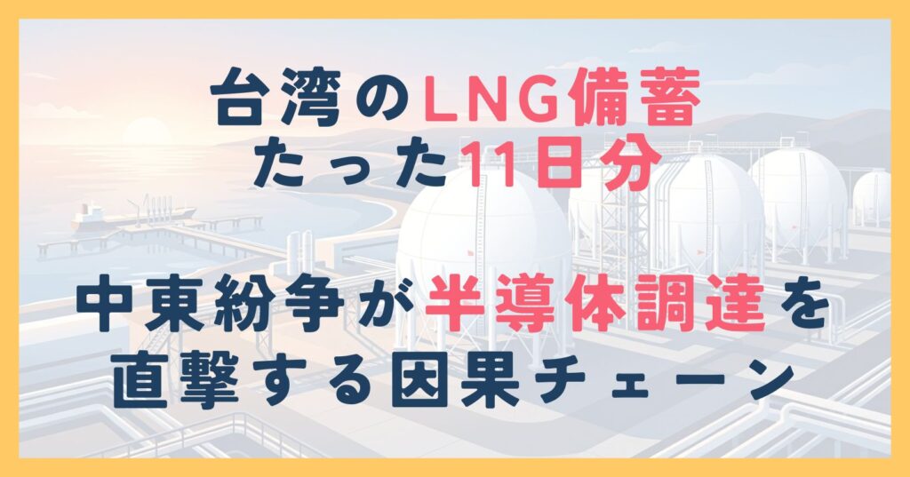台湾のLNG備蓄は「11日分」しかない——中東紛争が半導体調達を直撃する因果チェーンと今週できる3つの対策