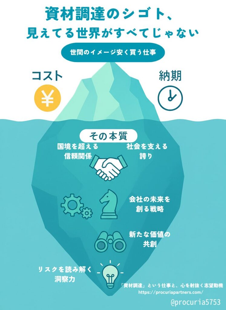 このメディアは、私の「現場経験(調達実務)」と「経営視点(理論)」を掛け合わせ、資材調達の専門知識やキャリアに役立つ情報を発信するために立ち上げました。
